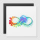 Símbolo de infinito multicolorido com água-viva brilhante arco-íris decorada com longos tentáculos em fundo branco. Água-viva arco-íris.