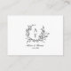 Cartão de detalhes de casamento com monograma de flores silvestres preto e branco formal e elegante.