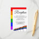 Este lindo cartão de acompanhamento de recepção de casamento tornará mais fácil para os seus convidados obterem todas as informações necessárias sobre a sua recepção de casamento. Concebido como parte da nossa Suite de Casamento Gay Pride Rainbow, apresenta texto em arco-íris com bandeiras gay pride.