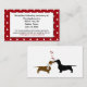 Whimsical dachshund — cartão do site de cerâmica de matrimônio feito em vermelho com bolinhas brancas, na frente, com uma área de texto branca. A parte de trás é branca, com um par de bonitinhos beijando. Personalize todo o texto, na frente para atender às suas necessidades de casamento. Combina com a nossa Bolinhas e com os Produtos de Casamento de Dachshances.