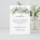 Cartão de Cerimônia de Casamento com Flores Verdes. Este convite de casamento elegante e sofisticado apresenta lindas flores verdes pintadas à mão em aquarela. Encontre itens correspondentes na coleção Watercolor Eucalyptus Floral Greenery_HB2.