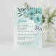 Cartão único de cerimônia de casamento com flores azuis românticas e folhas verdes. PARA MAIS PRODUTOS CORRESPONDENTES, clique na coleção acima ou entre em contato comigo.