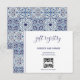 Cartão de inserção de registro de presente de casamento azul. Edite facilmente as cores da fonte clicando no botão Ferramenta de Edição de Design. Adicione seu próprio código QR para que os convidados possam facilmente responder e ver mais detalhes em seu site. Encontre o conjunto de convites correspondente e mais em nossa loja - a coleção de azulejos mediterrâneos -. Entre em contato conosco para mais produtos correspondentes.