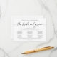 Este cartão contém informações de contato para amigos e familiares da noiva e do noivo que podem ajudar a responder perguntas para os convidados. Desta forma, a noiva e o noivo não se incomodarão com perguntas no dia do seu casamento e poderão desfrutar a cada momento!