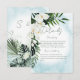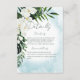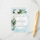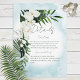 Este design de cartas de detalhes do casamento apresenta um belo verde-trópico e florais brancos em um fundo azul-aqua de cor azul-aqua de Caribe mole. Perfeito para o casamento de destino ou praia. Criado pela imprensa simplesmente de farmácia.