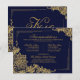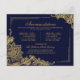 Elegante renda dourada sobre fundo naval com cartão de detalhes ou acomodações formais com monograma.