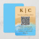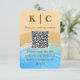 Convite de casamento moderno à beira-mar com ondas suaves do oceano azul e texturas de aguarela bege arenoso. Perfeito para casamentos na praia, cerimônias à beira-mar, casamentos de verão e celebrações de destino. Tipografia de roteiro elegante com estética romântica. Personalize com os detalhes do seu casamento e código QR do site.