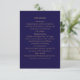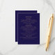 complete o seu conjunto de casamento azul-marinho e dourado com este cartão de envio correspondente. concebido para complementar o seu convite principal, este cartão fornece todos os detalhes essenciais do casamento, incluindo recepção, transporte, alojamento e informações do site. perfeito para uma celebração intemporal e sofisticada.