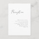 Cartão de envio de recepção de script mínimo 3.5x5. Texto preto em fundo branco. Parte de uma coleção de casamento.