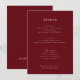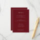 Este sofisticado cartão de cerimônia de casamento é perfeito para compartilhar detalhes essenciais com seus convidados. A cor do marrom profundo adiciona um toque de elegância, enquanto o layout claro e conciso garante que todas as informações sejam facilmente legíveis e acessíveis. Incluir detalhes sobre acomodação, transporte, programação de eventos e código de vestimenta. Este cartão complementará perfeitamente os seus convites para o casamento e ajudará a tornar o seu dia especial ainda mais organizado e memorável. A estética simples e moderna torna este cartão adequado para qualquer estilo de casamento.