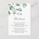 Este cartão de instruções rustic lavender é perfeito para um casamento ao ar livre simples e elegante. O design floral apresenta folhas de eucalipto em aquarela e folhagens com raminhos de flores silvestres roxas.