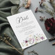 Cartão de Gabinete de Detalhes do Casamento de Flores Selvagens com elegante tipografia Eleve Sua Celebração: Cartão de Gabinete de Detalhes do Casamento Enriquece a experiência de seus convidados com nosso Cartão de Gabinete de Detalhes do Casamento, adornado com o charme eterno de verde-água e flores silvestres. Cada carta é uma obra-prima, mistura perfeita de estilo e substância para guiar seus entes queridos através das intricacias do seu dia especial. O guião gracioso fornece um toque de sofisticação, garantindo que cada detalhe, de local a local, seja apresentado com uma estética refinada. Escolha elegância; escolha a arte da tipografia negra e da arte da aquarela verde e flores silvestres para contar a história de sua celebração. Ativar seus convidados e dar o tom para um dia extraordinário. O Cartão de Gabinete de Detalhes do Casamento — onde cada palavra é um convite para se inscrever na beleza e graça que define sua união.