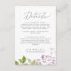 Este cartão de detalhes do casamento lilás é perfeito para um casamento de primavera ou verão. A romântica e elegante design floral apresenta flores lilás roxas de aquarela com uma sensação de jardim boho country.