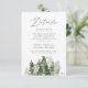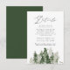 Cartão de cerimônia de detalhes do casamento elegante e rústico, com uma floresta de caçadores escuros verde e de pinheiros verdes e salgados. Personalize os cartões de informações de convidados do casamento adicionando detalhes importantes como acomodações de hotel, informações de recepção de boas-vindas, seu site, etc. Projetado para coordenar com a nossa coleção de casamento Rustic Pine Forest.