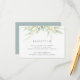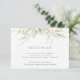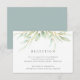 Criado para combinar com a nossa coleção de casamento Airy Botanical, este cartão de recepção verde e branco elegante apresenta um spray de folhagem verde pastel e folhas, com os detalhes da recepção, horário e endereço.
