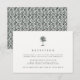 O cartão de recinto de recepção de casamento island chic apresenta letras elegantes em carvão cinza com uma ilustração de palmeira em estilo vintage. Personalize com o horário da recepção de casamento, local e quaisquer informações adicionais usando os campos fornecidos. Os cartões são impressos no verso com um padrão entrelaçado de palha em verde caçador escurecido. Projetado para combinar com a nossa coleção de convites de casamento Havana Palm para casamentos de verão, praia, ilha tropical e destino.