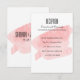 Um cartão de recepção de casamento moderno apresenta um fundo de lavagem de aquarela rosa.