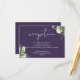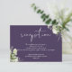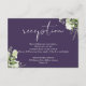 Este cartão de detalhes de casamento com folhas de folhagem botânica elegante pode ser personalizado com suas informações em tipografia sofisticada em um fundo roxo. Projetado por Thisisnotme