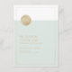 Ouro e hortelã em design minimalista simples moderno, cor de folha de ouro falso em círculo adiciona um pouco de glamour moderno, chique e simples, perfeito para casamento moderno ou casamento na praia no verão. Para alterar a cor do fundo de hortelã para combinar com o tema do seu casamento, clique no botão "Personalize!" e edite a cor na seção "Cor do Fundo Impresso". Personalize seu próprio cartão de recepção para o conjunto de convites de casamento.