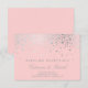 Cartão de recepção elegante e moderno com pontos de confetti prateados em fundo rosa blush. Esta é uma lamina prateada falsa - NÃO haverá lamina real. Este é parte de um conjunto de casamento. Itens correspondentes estão disponíveis.