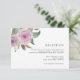 Elegante cartão de recepção de casamento floral em tons elegantes de lavanda roxa pastéis e verde salvia apresenta um buquê floral de aquarela no canto superior esquerdo, com os detalhes da sua recepção em letras clássicas preto fosco. Personalize com os detalhes da sua recepção de casamento, incluindo horário, local, endereço e qualquer informação adicional como transporte ou estacionamento.