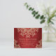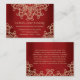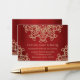 Um belo granizo tonto de joia e um casamento rubi vermelho e dourado ou qualquer cartão de recreação especial com um sari ornamental inspirado por índios exótico como um padrão com um lótus e um design de rajada solar floral. Este elegante e belo cartão de cervejaria moderno e luxo ao estilo indiano é perfeito para qualquer ocasião formal com noites árabes indonésias do leste asiático ou tema aladino. Design © Chrissy H. Studios, LLC. Todos os Direitos Reservados.
