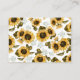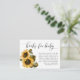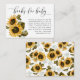 Cartão de pedido russo de chá de fraldas com ilustração aquosa de girassóis amarelos com o hálito do bebê. O cartão aos hóspedes que tragam um livro infantil novo ou usado em vez de um cartão.