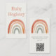 Compartilhe as informações do registro do seu bebê lindamente com esta adorável inserção rústica, com uma mão pintada estilo terracotta e arco-íris pastel em tons suaves de aquarela. O layout minimalista e moderno é emparelhado com uma fonte inspirada em vintage para um toque divertido e amigável. Os convidados podem facilmente verificar o código QR para acessar seu registro, fazer-o perfeito para chás de fraldas ou anúncios. Os tons de terra quente e a paleta de cores naturais se coordenam sem esforço com temas de partido boho, neutro ou rústico, um detalhe convidativo e na moda que mantém sua celebração organizada e memorável.