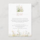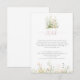 Este cartão de hotel de flor selvagem de boho verde é perfeito para um casamento russo. O design apresenta flores silvestres cor-de-água rosa, pinceladas, amarelas e brancas dispostas em buquês elegantes.
