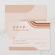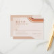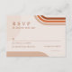 Cartão moderno de RSVP de casamento boho com formas de arco em tons de terracota, ferrugem, laranja queimado e verde escuro, esmeralda.