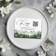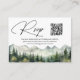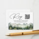 Um cartão de resposta de casamento elegante com montanhas em aquarela e pinheiros que você pode personalizar com seu texto.