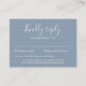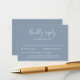 Cartão de resposta de casamento com características elegantes, modernas e limpas tipográficas com uma paleta de cores azul poeirado. Este cartão de resposta está pronto para você personalizar com os detalhes do seu dia especial.