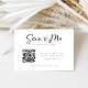 Cartão de RSVP de casamento moderno com uma bela fonte em coração que adiciona um toque de elegância divertida ao seu evento - personalizável com seu código QR. Clique em “personalizar mais” para alterar a fonte ou a cor do fundo para combinar com o tema do seu casamento.