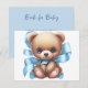 Cartão de solicitação de livro para acompanhar seus convites de chá de bebê. Se você quiser pedir aos convidados que forneçam um livro como presente para o chá de bebê, considere este cartão de solicitação de livro para chá de bebê com urso azul. Use o modelo para personalizar.