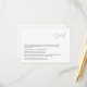 Apresentando nosso Cartão de Detalhe de Casamento de Script Minimalista Moderno, uma adição essencial à sua suíte de papelaria de casamento. Com suas linhas limpas e design de roteiro minimalista, esse cartão exude elegância e sofisticação contemporâneas. Criado com atenção aos detalhes, nosso cartão detalhado de casamento fornece informações essenciais para seus convidados, como detalhes do local, opções de alojamento e outros detalhes importantes sobre seu dia especial. A tipografia da escrita minimalista acrescenta um toque de refinamento, perfeito para casais que buscam uma estética elegante e na moda para sua papelaria de casamento. Impressos em estoque de cartão de alta qualidade, nossos cartões detalhados oferecem uma aparência luxuosa e que impressionará seus convidados. Quer você esteja planejando uma reunião íntima ou uma grande celebração, este cartão certamente fará uma impressão duradoura e garantirá que seus hóspedes tenham toda a informação que eles precisam para aproveitar o dia do seu casamento ao máximo. Faça uma declaração com a papelaria do casamento e melhore a sofisticação dos detalhes do seu casamento com o nosso Cartão de Detalhe de Casamento de Script Minimalista Moderno. É a escolha perfeita para casais que apreciam designs limpos e contemporâneos e querem que seus artigos de papelaria reflitam seu gosto refinado
