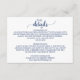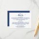 Este simples cartão de detalhes de caligrafia azul marinho é perfeito para um casamento elegante. A design branca e azul apresenta tipografia rústica e um adorável coração romântico.