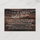 Se você estiver hospedando um chá de exibição de não-presente para uma noiva para ser casual ou temático rústico, este cartão único poderá ser a escolha para você. Usando uma fonte elaborada e ousada, criei um gráfico de cabeçalho de tipografia que lê "chá de exibição" no lado da informação, e "para" e "de" para o lado da etiqueta de presente. O campo de modelo foi criado para oferecer instruções aos convidados que não embrulhassem o seu presente; por favor, sintam-se livres para alterar a redação da forma que quiserem. Usei um sans-serif moderno para esta cópia. Há muitos alternativos populares neste texto, se você quiser uma mudança. O fundo estava coberto de uma foto de madeira marrom-escura rica e com texturas ásperas. A parte inferior desta imagem foi parcialmente mascarada por uma camada escura turva para ajudar as palavras a pop mais intensamente. Você pode remover esta camada se quiser. Sobre o topo de ambos os lados adicionei um gráfico que mostra cordas de luzes de fadas cintilantes; estas são fáceis de remover se o sentido de design não as exigir.