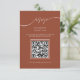 Este Cartão RSVP de Casamento de Código de QR Russo Moderno Terracotta é perfeito para o seu casamento mínimo. Com a combinação perfeita de caligrafia elegante e romântica e estética do chique, basta adicionar seu próprio Código QR e site de casamento. Personalize o texto para ler o que quiser.