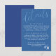 Este cartão azul de informações de casamento é simples, mas elegante. Personalize-o facilmente para o seu evento. Um belo título de caligrafia pode ser mudado para suíte uma variedade de papéis de carta de casamento. Este cartão é versátil para cores de casamento azuis ou azuis-marinho.