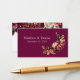 Adicione significado e elegância ao seu conjunto de casamento com este cartão de RSVP burgundy e rosa, apresentando crisântemos ricamente detalhados - flores há muito associadas à alegria, longevidade e devoção. Perfeito para casamentos de outono ou românticos, este cartão inclui espaço para o seu código QR personalizado, permitindo que os convidados respondam digitalmente e acessem o site do seu casamento para detalhes da recepção, viagem e hotel.