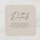 Adicione um toque moderno à papelaria do seu casamento com este cartão de detalhes bege minimalista. Com tipografia estilosa de um lado e um código QR escaneável no verso, é a maneira perfeita de compartilhar o site do seu casamento, link de RSVP, acomodações ou direções de viagem. O fundo bege neutro e o design limpo tornam-no uma escolha versátil que combina perfeitamente com qualquer conjunto de convites de casamento, especialmente para casais que amam um visual simples, porém elegante.