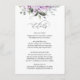 Esta bela placa de gabinete de detalhes é a maneira perfeita de compartilhar informações importantes com seus convidados. O cartão tem um tema lilático, com um design floral impressionante que traz elegância ao seu evento especial. O cartão é perfeito para casamentos, festas ou qualquer outra ocasião em que você queira compartilhar detalhes com seus convidados. A placa é impressa em papel de alta qualidade e vem com um envelope correspondente, fazer fácil de enviar aos convidados. Esta placa de gabinete de detalhes será certamente um sucesso para seus convidados e ajudará a fazer seu evento funcionar sem problemas.