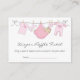 Tíquete de Fralda de Raffle personalizável para uma Chá de fraldas, Cartão de visita. Desenho de uma Garota Bebê pendurada em uma linha de roupas em uma cama rosa. Bebês cor-de-rosa, meias e um coelho ursinho cor-de-rosa também estão pendurados na linha de lavagem. Qualquer Fralda, fralda de Cloth, fraldas descartáveis são adequadas para uma Fralda do Desenhar do Prêmio Raffle. Também pode ser usado como Favorito/Favorito, Etiquetas de Oferta de Chá de fraldas, Placas de Planos de Seque. Há espaço para o nome dos entrantes na parte inferior do cartão Texto pode ser alterado em fonte, cor, tamanho e localização clicando no botão azul 'PERSONALIZAR TI'. Disponível também como Obrigados de cartão de visita fino para visitas.
