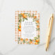Celebre a chegada do seu pequeno com nosso charmoso livro de chá de fraldas para cartão de bebê com um design delicioso de flores laranja em relação a um padrão de verificação na moda