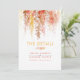Cachorros soltos pintados à mão caem vinhas autóctones casamento dos detalhes mais um cartão de informação. Perfeito para um casamento outono ou outro evento de outono. Edite este cartão com seus próprios nomes e detalhes de casamento, como conselhos de convidado, agendamento, opções de alojamento de convidado e outras solicitações ou detalhes de serviço. Outros itens de correspondência e outros itens de cor estão disponíveis. © Original watercolor hand painting vines em tons de laranja, amarelo-mostarda e marrom mais o design é de Sarah Trett para www.mylittleedenweddings.com apenas no Zazzle.