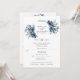 Flores de índigo azul que armam os nomes dos casais de forma elegante e decorativa. O cartão de resposta é um cartão recortado, com opções de refeições e com o endereço de retorno pré-impresso. Uma solução moderna, tudo em uma solução, para evitar que o cartão rsvp fechado acabe acidentalmente sob o frigorífico. No verso do convite há uma informação de Detalhes opcional. *O design pode ser personalizado com diferentes fontes, cores ou tipos de papel.