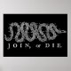 Junte-se, ou Die é o desenho político de Benjamin Franklin publicado em seu Jornal da Pensilvânia em 9 de maio de 1754. É a mais conhecida representação pictórica da união colonial produzida por um colonizador britânico na América. O original era, na verdade, um recorte de madeira mostrando um cobra cortado em oitavos, com cada segmento rotulado com a inicial de uma colônia ou região britânica americana. O cartoon apareceu junto com o editorial de Franklin sobre o "estado desunido" das colônias, e ajudou a destacar a importância da unidade colonial. Nessa época, havia uma superstição de que um cobra que tivesse sido cortado em pedaços voltaria a ganhar vida se as peças fossem montadas antes do pôr do sol. Nós, no site LibertyManiacs.com, temos esportes de camisas e produtos com a imagem original, mas queríamos modernizá-la para torná-la relevante para os patriotas de hoje. Foi por isso que fizemos um redesenho completo do East Rattler do Franklin, o cortamos em 50 seções diferentes, e rotulamos cada estado. Agora - finalmente - temos uma design renovada para todos os maníacos da liberdade que espalham a mensagem da liberdade!