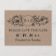 Moldura floral vintage em cartão kraft com iniciais casamento cartão postal Salve a Data. O principal elemento deste design é a bela moldura vintage com suas iniciais em papel de cartão kraft.