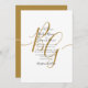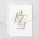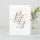 Esta design apresenta uma elegante mas simples disposição das iniciais personalizadas da noiva e do noivo. O texto preto é colocado sobre as iniciais do primeiro nome da noiva e do noivo que são exibidas na tipografia da cor do ouro. Este design preto, branco e ouro é simples, mas elegante em todos os sentidos. O verso exibe um fundo colorido do ouro com as iniciais em branco. A combinação de cores cria um estilo sofisticado, moderno e chic. Design de convite para casamento elegante com elementos modernos. A configuração simples da tipografia lhe dá um estilo distinto. Também estão disponíveis itens de papelaria de casamento e outros formatos de convite de casamento.