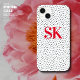 Bolinhas de qualquer tamanho nunca saem do estilo. Este gabinete apresenta uma pequena bolinhas no estilo confetti em preto-e-branco na moda. Ele contém grandes iniciais que você pode personalizar completamente. Você pode fazê-lo exclusivamente seu personalizando-o com seu nome. Capas padrão e rígidas disponíveis para todos os modelos de iPhone.
